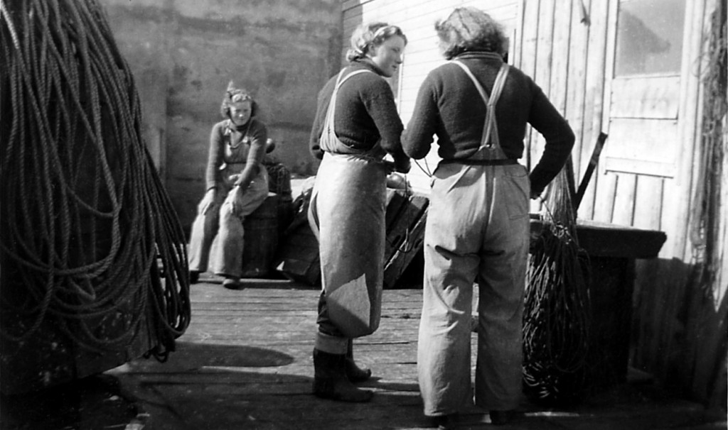 Ragna Björnsdóttir og Ósk Hallsdóttir við beitingu á Kljáströnd