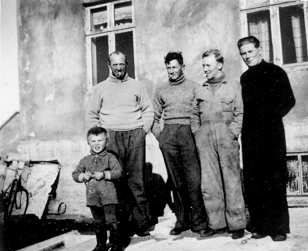 Bjarni Áskelsson, Sigurvin Guðlaugsson, Guðmundur Halldórsson og Arthúr Vilhelmsson. Litli drengurinn er Njáll Þorbjarnarson